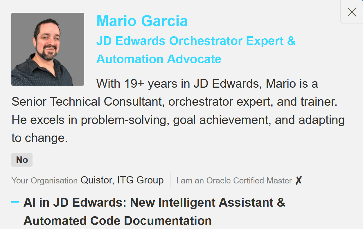 🌞 9:00 AM: Innovation and Future As I mentioned on LinkedIn, I will start the day talking about how Artificial Intelligence is redefining JD Edwards. I will present real cases of: